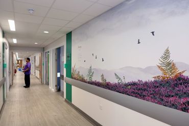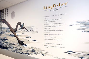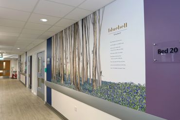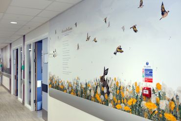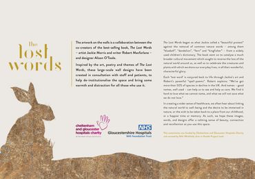 It was a complete JOY and privilege to work on this project at Gloucestershire Royal Hospital and have the opportunity to bring the glorious illustrations, poetry and graphics from The Lost Words book into the clinical setting of a hospital ward, and see the corridors transformed with colour and vibrancy.